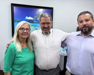 Central Florida Laundry’s management team, from  left to right: Eva Eberle, national laundry director; Richard Cowan, national director of housekeeping; and Yassine Aitboukil, laundry sales manager.
